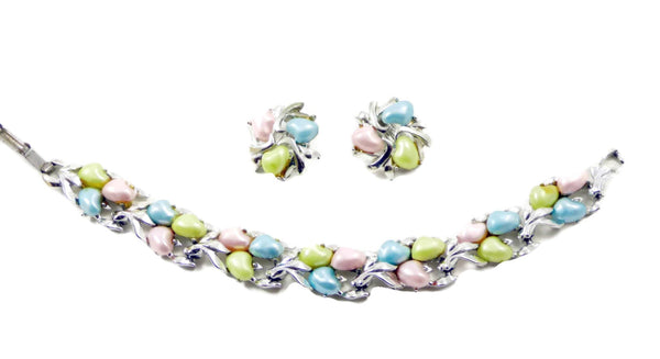 Vintage BSK Pastel Thermoset Bracelet and Clip Earrings