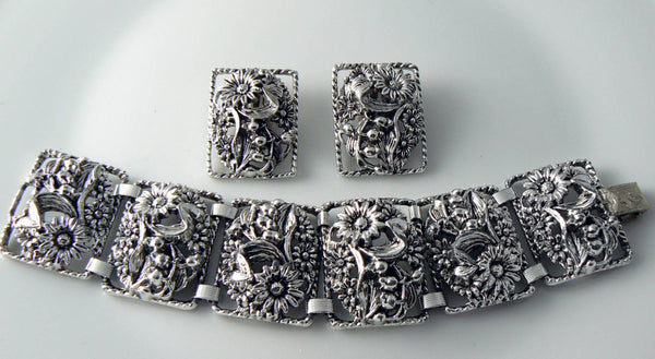 Vintage Chunky Silver Tone Floral Sarah Coventry Set