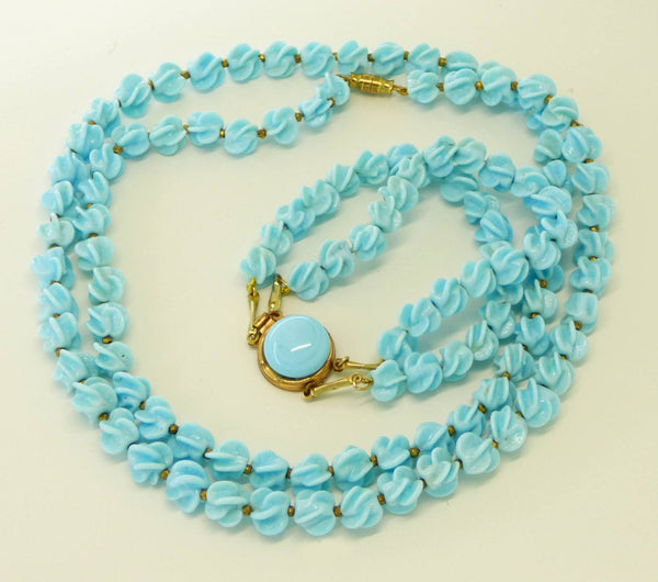 Vintage French Louis Rousselet Baby Blue Glass Necklace Bracelet Set
