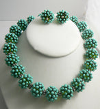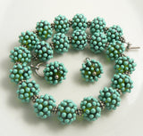 Turquoise Green Glass Necklace and 14K White Gold Earring Set