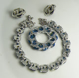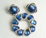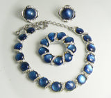 3 Piece Coro Montana Blue Moonglow and Clear Rhinestone Necklace Brooch & Earrings