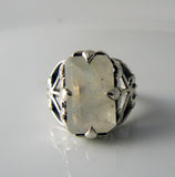 6ct Natural Emerald Cut Moonstone Solid Sterling Silver Filigree Ring
