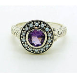 Amethyst and Pearl Sterling Silver Art Deco Poison Ring, Size 8