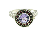 Amethyst and Rubelite Sterling Silver Art Deco Poison Ring, Size 6