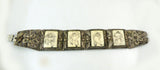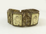 Antique Chinese Export Ox Bone Silver Filigree Warrior Scrimshaw Bracelet