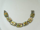 Antique Persian Storybook MOP Fine Silver Bracelet. This has mother of pearl panels that depict a story. Tests positive for 800 silver. The clasp is stamped Japan but if you look closely, the clasp has been replaced. It is a clasp for 3 strings. Measures 7" in length. Very good condition for age. circa 1920's.
