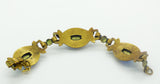 Art Deco Czech Brass and Blue Enamel Bracelet. Marbled light blue cabochon stones with light blue enamel accents set in oval brass links. Measures 6 1/2" in length by 3/4" wide. Newer gold color spring ring closure. Very good vintage condition. circa 1930's.
