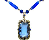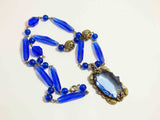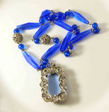 Art Deco Czech Large Sapphire Blue Glass Filigree Art Glass Necklace