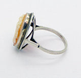 Art Deco Oval Left Faced Shell Cameo Sterling Silver Ring, Size 6.5