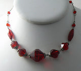 Art Deco Red Faceted Glass Necklace