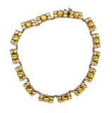 Art Deco Riviera Necklace Yellow Glass Choker, Set in rose gold tone metal. Measures 15" in length. This has a push clasp and safety chain. Excellent condition. The black squares in the picture are a reflection, the stones have a lot of sparkle.