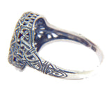 Art Deco Rose Glass Sterling Silver Filigree Revival Ring