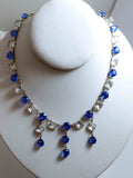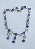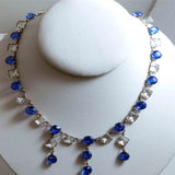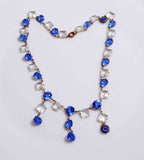 Art Deco Sapphire Blue and Clear Drippy Crystal Necklace