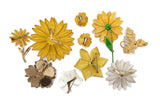 Autumn Colors Enamel Flower Lot 8 flowers, clip earrings
