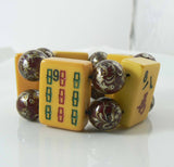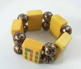 Bakelite Antique Mahjong game Tile Bracelet. Hand Painted Tiles and Lucite beads.