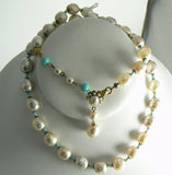 Baroque Glass Pearl and Aqua Glass Bead Miriam Haskell Necklace