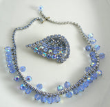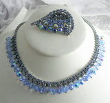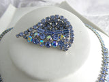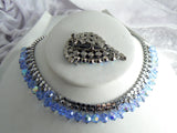 Beautiful Blue Rhinestone And Crystal Vintage Necklace Brooch Set
