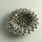Beautiful Red and Ice Rhinestone Vintage Pin. This nice vintage pin looks designer to me, but is unsigned. It is silver tone or plate with sparkling ice, pink and red rhinestones.Measures just under 2" in diameter.
