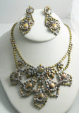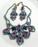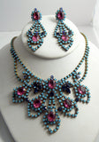 Beautiful Taboo Czech Glass Opaque Blue Pink Rhinestone Necklace Earring Set