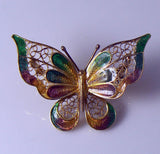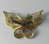 • Beautiful Vintage Italian Gold Washed Sterling Silver Filigree And Enamel Butterfly Brooch - Vintage Lane Jewelry