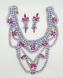 Bijoux M.G. Czech Glass Lavender Rhinestone Pink Navettes Statement Necklace and Pierced Style Earring Set
