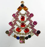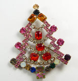 Bijoux M.G. Czech Rhinestone Colorful Christmas Tree Brooch, Xmas Pin, Holiday