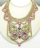 Bijoux MG Pink and AB Rhinestone Butterfly Necklace Earring Set