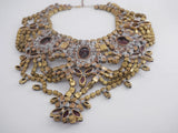 Bijoux MG Shades of Purple Czech Glass Cameo Statement Necklace. Set in non-plated brass. Signed Bijoux MG. Measures 13" in length with a 5" extension chain. Excellent condition.