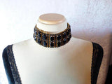 Black Czech Glass Rhinestone Collar Necklace, Husar D.