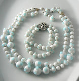 Blue And White Glass Bead Trifari Necklace Bracelet Set