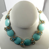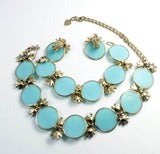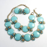 Blue Bead Enamel and Rhinestone Flowers Necklace Bracelet Earring Set