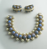 Blue Confetti Glass Bead Faux Pearl Bracelet Earring Set