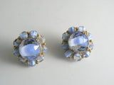 Blue Givre Glass Stone Hattie Carnegie Clip Earrings