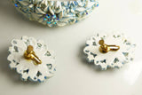 Celluloid Molded Blue Flower and Rhinestone Hinge Bracelet and Earring Set