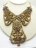 Christmas Czech Glass Husar D. Christmas Trees Necklace. Set in non-plated brass. Signed Husar D. Features 3 Christmas trees and 3 flowers surrounded by clear round faceted rhinestones. Measures 19" in length with a 2 1/4" extension chain. The center drop measures 5" Excellent condition.