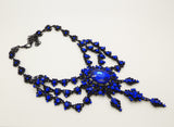Cobalt Blue Rhinestone Black Gun Metal Statement Lavalier Necklace
