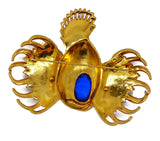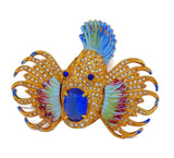 Corocraft Rhinestone Rock Fish. Set in gold tone base metal. Signed Corocraft. This is the base metal version of the rock fish. It was originally designed by Adolph Katz and can be found in the book American Costume Jewelry: Art & Industry, Vol. 1 (pg. 142) by Roberto Brunialti Measures. 2 1/4" high by 3" wide and is in excellent condition. Please refer to the link below for authenticity,