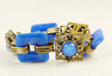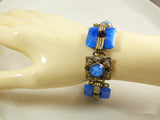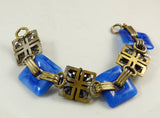 • Czech Deco Nouveau Star Sapphire Glass Brass Bracelet - Vintage Lane Jewelry