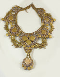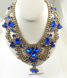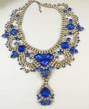 Czech Glass Blue Rhinestone Husar D Necklace, Statement Necklace