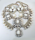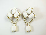 Czech Glass Bold Milk Glass Necklace with Matching Clip Earrings, Wedding Set, Bridal Jewelry. This has opaque white glass stones. Set in non-plated brass. Measures 19 1/4" in length. The clip earrings are 3 1/2" Very good vintage condition.