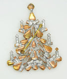Czech Glass Candles Christmas Tree Brooch, Vintage Rhinestones Xmas Tree Pin