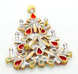 Red, Lavender and light green Christmas Tree Candles Brooch, Vintage Rhinestones Xmas Tree Pin. Set in non-plated brass. This has pink, blue, green and red faceted rhinestones. Clear rhinestones make up the candles on the side of the tree. Measures 3" by 2" Excellent condition.