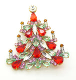 • Czech Glass Candles Red, Lavender and light green Christmas Tree Brooch, Vintage Rhinestones Xmas Tree Pin - Vintage Lane Jewelry