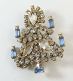 Czech Glass Clear Rhinestone Blue Candles Christmas Tree Pin, X-mas pin, Holiday Brooch