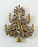 Czech Glass Husar D. Clear Rhinestone Blue Candles Christmas Tree Pin, X-mas pin, Holiday Brooch. Set in non-plated brass. Measures 2 1/4" by 2" Excellent condition.
