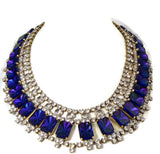 Czech Glass Cobalt Blue Rhinestone Bib Necklace, Husar D.