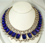 Czech Glass Cobalt Blue Rhinestone Bib Necklace, Husar D