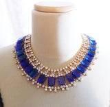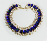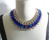 Czech Glass Cobalt Blue Rhinestone Bib Necklace, Husar D.