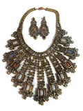 Czech Glass Colorful Statement Necklace and matching earrings. Signed Husar D. Set in non plated brass. The necklace measures 17" with a 2 1/2" extension chain. The earrings are 2 1/2" by 1/2" Very good condition.