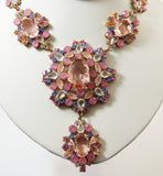 Czech Glass Dusty Rose Glass Statement Necklace. Set in non-plated brass. Beautiful necklace with shades of rose and pink and a little lavender. Measures 19" including 3 " extension chain. The center drop is 4" Excellent condition.
